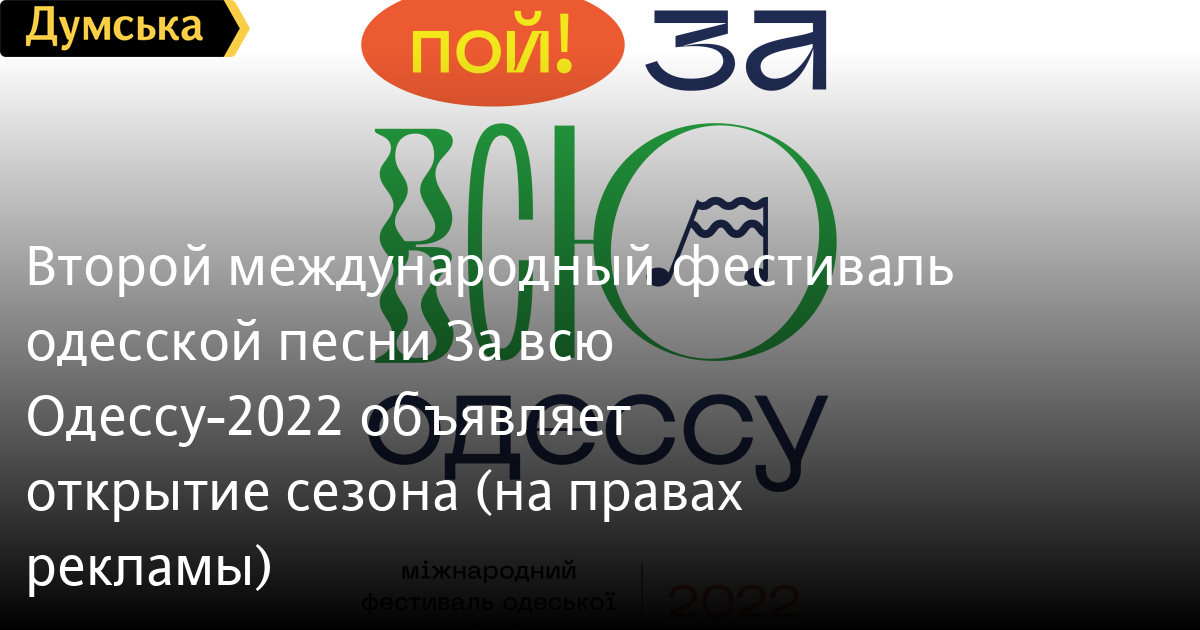 Второй международный фестиваль одесской песни «За всю Одессу-2022» объявляет открытие сезона (на правах рекламы)Фестиваль одесской песни «За всю Одессу!» объявляет открытие нового сезона. Сам фестиваль пройдет 6 и 7 августа в Летнем театре «Морвокзал», но уже с 1 января 2022 года стартует конкурс исполнителей одесской песни. Фестивальная программа на стадии формирования. Уже запланированы выступления ряда известных исполнителей, работающих в жанре одесской песни, и не только из Украины. В программе также примут участие победители конкурсной программы. В этом году к команде фестиваля в качестве ведущего присоединится известный шоумен, актер Ян Левинзон. «Одесская песня это особый жанр, где главную роль играют содержание и манера исполнения. Песня должна быть на одесском языке. Это особый талант, это именно то, что присуще одесской песне. В работе с конкурсантами прошлого сезона мы получили ряд авторских песен про Одессу, но не все они звучали по-одесски. Наша цель — представить широкой публике те таланты, которые поддерживают традиции одесской песни. Поэтому в этом сезоне конкурс нацелен на поиск именно авторов», — комментирует автор идеи фестиваля Александр Шаргородский. Прием конкурсных заявок будет проходить с 1 января по 31 мая 2022 года. А уже в конце июня будут объявлены победители, которые получат возможность записать свою песню на профессиональной студии и выступить на сцене фестиваля. Обязательным условием участия является наличие опыта концертных выступлений. Все детали можно узнать на сайте фестиваля www.zavsyuodessu.od.ua и в telegram-канале https://t.me/zavsyuodessu. В жюри конкурса вошли автор идеи фестиваля Александр Шаргородский, известные музыканты Феликс Шиндер, Сергей и Алена Меньшагины, Игорь Знатоков, Кристина Параскив-Знатокова. Возглавляет группу арбитров Гарик Кричевский. Международный фестиваль одесской песни «За всю Одессу!» — это культурная платформа, миссией которой является поддержка и развитие музыкальных традиций Одессы, во главе которых – одесская городская песня. Первый сезон фестиваля состоялся в августе 2020 года, и представил более 30 участников из трех стран. Хедлайнерами выступили Валентин Куба, Феликс Шиндер и Гарик Кричевский. Более 3500 гостей посетили три фестивальных дня. Контакты фестиваля: E-mail: Сайт: www.zavsyuodessu.od.ua Telegram: https://t.me/zavsyuodessu FB: @zavsyuodessu Instagram: @zavsyuodessu СМЕРТЬ РОССИЙСКИМ ОККУПАНТАМ! Заметили ошибку? Выделяйте слова с ошибкой и нажимайте control-enter |