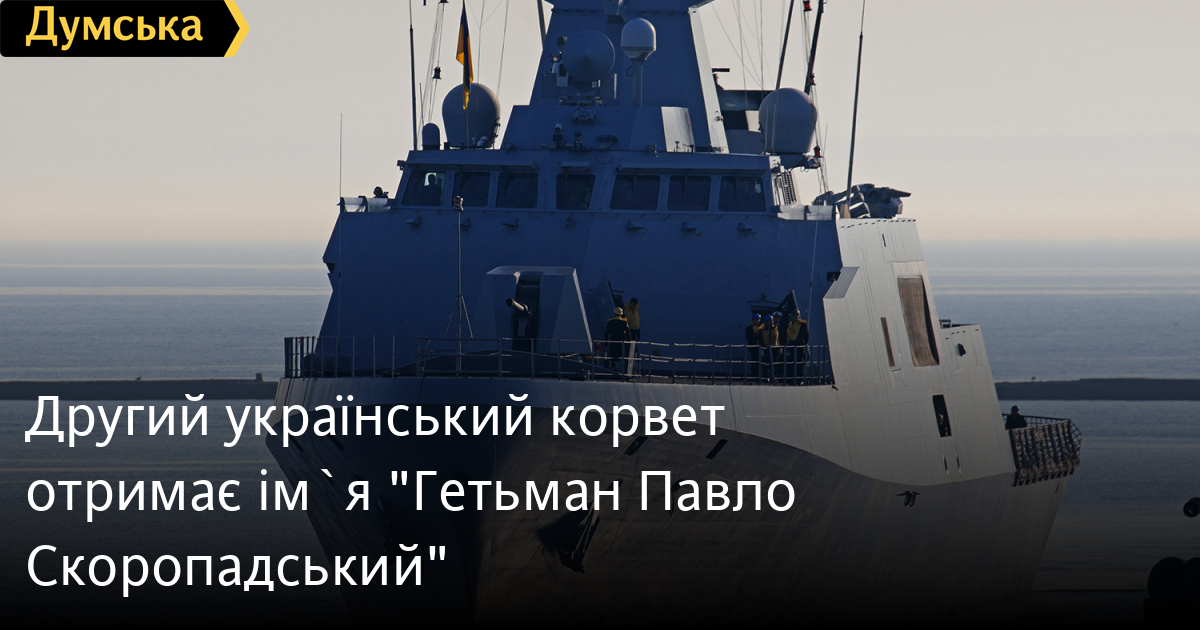 Другий український корвет типу ADA, який почали будувати на турецьких верфях, носитиме ім'я «Гетьман Павло Скоропадський».