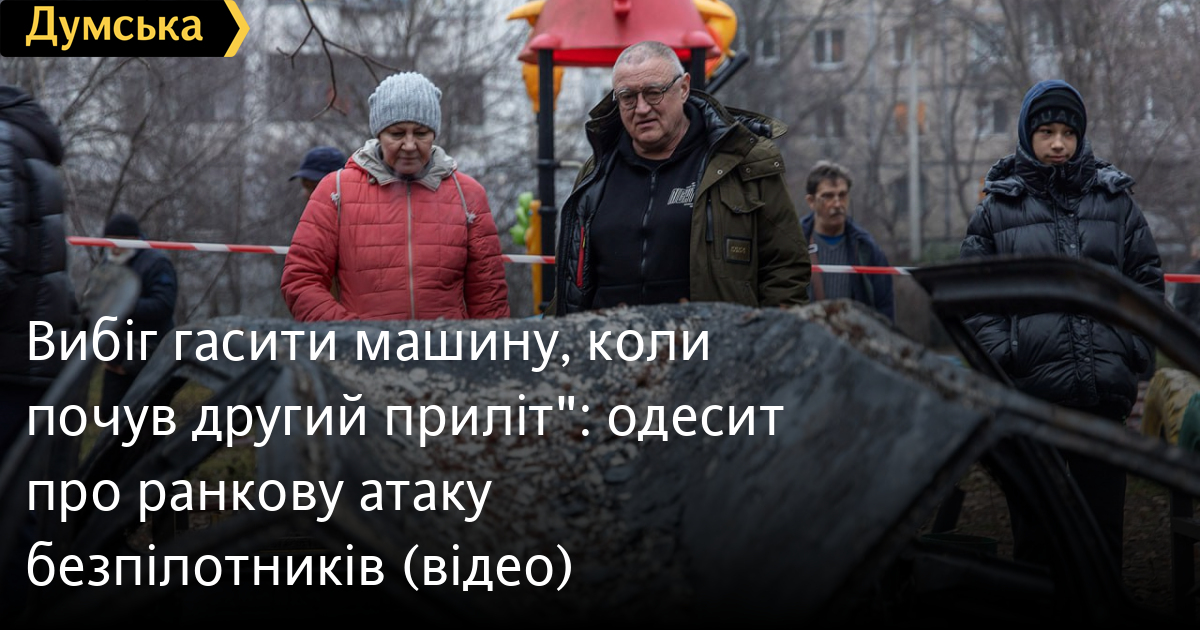 «Вибіг гасити машину, коли почув другий приліт»: одесит про ранкову атаку безпілотників (відео)