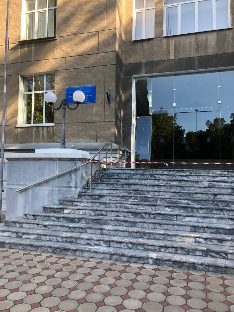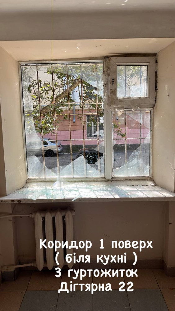Крім того, постраждало панорамне скління центрального входу в головний корпус «будівництва» на вулиці Дідріхсона: конструкцію доведеться зводити наново, оскільки постраждали ребра жорсткості.