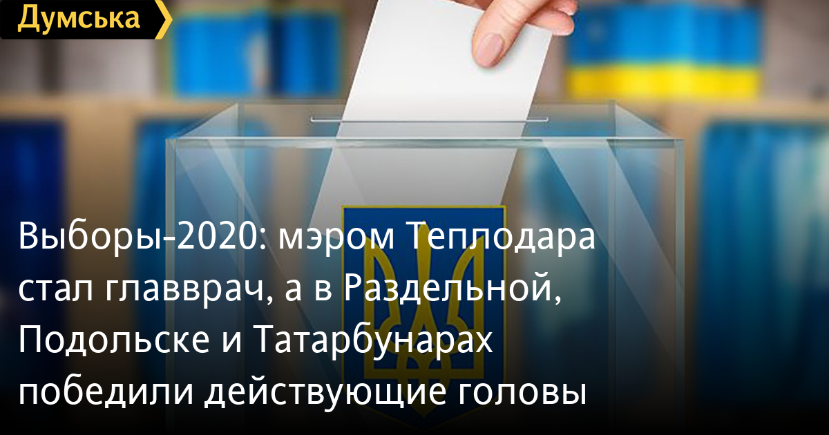 Выборы-2020: мэром Теплодара стал главврач, а в Раздельной, Подольске и Татарбунарах победили действующие головыПодведены окончательные итоги выборов мэра в Теплодаре, Раздельной, Подольске и Татарбунарах. В первом действующий руководитель Михаил Жовнир, который в этот раз баллотировался от президентской партии «Слуга народа», потерпел сокрушительное поражение. Он финишировал лишь пятым, набрав 365 голосов, или 11,7%. Победителем стал главврач городской больницы Александр Чуйко, который шел на выборы самовыдвиженцем. Его поддержали 863 избирателя, или 27,68%. На втором месте — еще один самовыдвиженец Сергей Бурлачук (701 голос, или 22,48%), третьем — представитель ОПЗЖ и внук экс-мэра Теплодара Михаил Печерский (482, или 15,46%). А вот в Раздельной действующий мэр Валерий Шовкалюк, который теперь представляет партию своего одесского коллеги «Доверяй делам», победил. У него 3929 голосов, или 47,8%. На втором месте — Каменский сельский голова Николай Петровский (ОПЗЖ). Его поддержали 2419 избирателей, или 29,4%. Улыбнулась удача и бессменному руководителю Подольска Анатолию Иванову, который возглавляет город с 1988 года. Он набрал 3180 голосов, или 30,54%. Представитель «Слуги народа» Олег Албанский занял второе место — 2520 голосов, или 24,2%. Также сохраняет свой пост городской голова Татарбунар Андрей Глущенко, который участвовал в выборах как самовыдвиженец. За него проголосовали 2814 человек, или 42,5% пришедших на участки. Второе место — у Дмитровского сельского головы Ивана Станимака, баллотировавшегося от «За майбутнє», — 1545 голосов, или 23,33%. СМЕРТЬ РОСІЙСЬКИМ ОКУПАНТАМ! Помітили помилку? Виділяйте слова з помилкою та натискайте control-enter Новини по цій темі: 12 листопада 2021: В Каролино-Бугазе и Затоке планируют провести повторные выборы в январе 31 жовтня 2021: В Каролино-Бугазе и Затоке сорвались повторные выборы: так и не появились деньги на бюллетени 12 жовтня 2021: Затоку и Каролино-Бугаз хотят возглавить девять человек: среди них - руководитель райсовета 4 вересня 2021: В Каролино-Бугазе и Затоке все-таки пройдут повторные выборы |