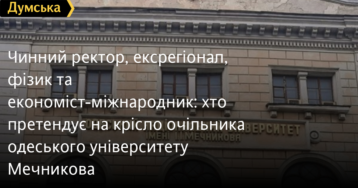 Чинний ректор, ексрегіонал, фізик та економіст-міжнародник: хто претендує на крісло очільника одеського університету МечниковаДо зміни керівництва готуються в Одеському національному університеті імені Мечникова. Претендентів, які візьмуть участь у виборах нового ректора, офіційно визначило Міністерство освіти і науки України. Усього кандидатів четверо. «Думська» зібрала інформацію про кожного з них. Володимир Ковальчук — доктор фізико-математичних наук, професор. Народився в Кривому Розі. У 1981 році Ковальчук із відзнакою закінчив Дніпропетровський державний університет за спеціальністю «Фізика». Свою наукову підготовку продовжував в аспірантурі Інституту фізики напівпровідників у Києві та докторантурі Південноукраїнського педагогічного університету ім. Ушинського. У 1981–2008 пройшов шлях від асистента до завідувача кафедри теоретичної фізики Одеського педагогічного університету ім. Ушинського. Також викладав в Одеському інституті вимірювальної техніки та Військовій академії, де очолював кафедру природничо-наукових дисциплін. Протягом десяти років, з 2013 до 2023 року, Володимир Ковальчук був директором коледжу комп'ютерних технологій Одеського державного екологічного університету. Після цього протягом 20 днів обіймав посаду ректора цього вишу, що стало своєрідним антирекордом за тривалістю керівництва. Нагадаємо, 2024-го Гідромет став частиною університету Мечникова (яким на той момент керував В'ячеслав Труба, про нього нижче), що супроводжувалося скандалами та протестом професорсько-викладацького складу. Тобто фактично Ковальчук претендує на місце ректора вишу, який поглинув його «рідний», конкуруючи з людиною, яка стояла на той момент біля керма. Науковець стажувався в університетах Іспанії, Канади, Швейцарії, Японії, Німеччини та КНР. Має численні відомчими нагороди та відзнаки. На сьогодні є автором понад 400 наукових праць. Андрій Неугодніков — кандидат юридичних наук, доцент. Родом зі Свердловської області (рф), проте ще в дитинстві переїхав із родиною до Біляївки Одеської області, де закінчив школу. Вищу освіту здобув в Одеській юридичній академії, яку закінчив у 2002 році. Вже за чотири роки він захистив дисертацію, здобувши ступінь кандидата юридичних наук. Професійну кар’єру розпочав у 2005 році в стінах рідної академії. Працював асистентом, доцентом кафедри адміністративного та фінансового права, а також обіймав посаду помічника ректора. З 2009 по 2016 роки очолював факультет цивільної та господарської юстиції Юридичної академії. Неугодніков має досвід й у політиці: у VI скликанні Верховної Ради (2007–2012) був помічником-консультантом Сергія Ківалова на громадських засадах. Також він двічі обирався депутатом Одеської міськради: у 2010 році — від Партії регіонів, а у 2015-му — від «Морської партії Сергія Ківалова». Під час депутатської діяльності працював у постійній комісії з питання економічної, інвестиційної політики, торгівлі та інформаційних технологій. Зазначимо, що Неугодников нещодавно був призначений заступником голови ОВА з питань цифровізації. За словами джерела «Думської», він фактично є кандидатурою від обласної влади. Чинний ректор Вячеслав Труба — доктор юридичних наук, професор. Одесит. Після служби в армії він вступив до Університету імені Мечникова, який закінчив із відзнакою у 1992 році. Вся