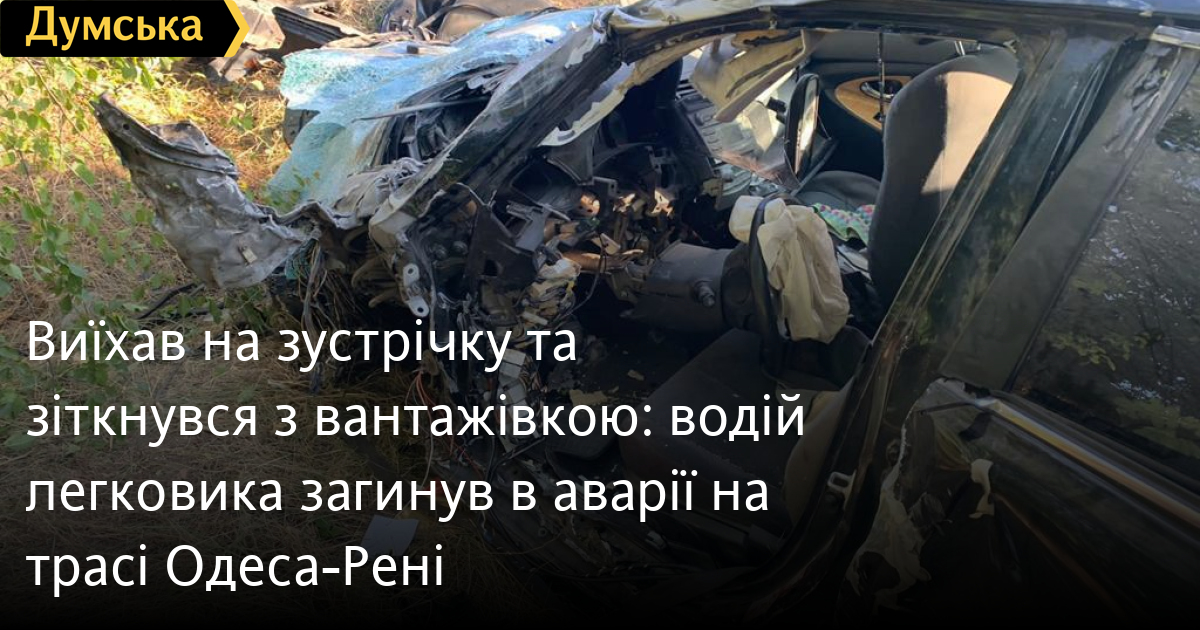 Виїхав на зустрічку та зіткнувся з вантажівкою: водій легковика загинув в аварії на трасі Одеса-Рені63-річний іноземець загинув внаслідок ДТП, яке сталося вранці 12 вересня на трасі Одеса-Рені у Білгород-Дністровському районі. Як повідомили у поліції, водій автомобіля «Тойота» виїхав на смугу зустрічного руху, де зіткнувся з вантажівкою DAF під керуванням 55-річного мешканця іншої області. Внаслідок аварії водій легковика отримав тяжкі травми. Його доправили до лікарні, де незабаром помер. Водій вантажної машини не постраждав. Експертиза показала, що він був тверезий. Обставини події встановлюють правоохоронці. Помітили помилку? Виділяйте слова з помилкою та натискайте control-enter Новини по цій темі: 30 серпня 2025: Машина вилетіла в кювет: мер Рені потрапив в аварію, його мати загинула, а маленький син у лікарні (фото) 18 серпня 2025: Троє загинули, один у лікарні: на трасі Одеса-Рені водій Mercedes не пропустив фуру (фото) 28 липня 2025: П'яний на "Ягуарі" або гіпертонік? Звільнений топ-посадовець одеської поліції хоче повернутися на службу 2 квітня 2025: В Одесі водій BMW спровокував аварію, в якій постраждали п`ятеро людей, і втік (фото, відео) |
