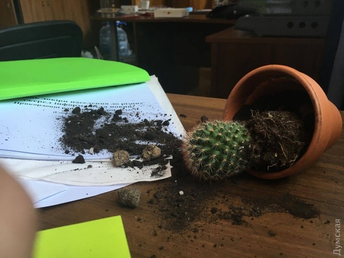 Обыску подвергся даже кактус. Безобидное растение выкопали из вазона с корнем — вероятно, искали в земле полезные ископаемые белого цвета.