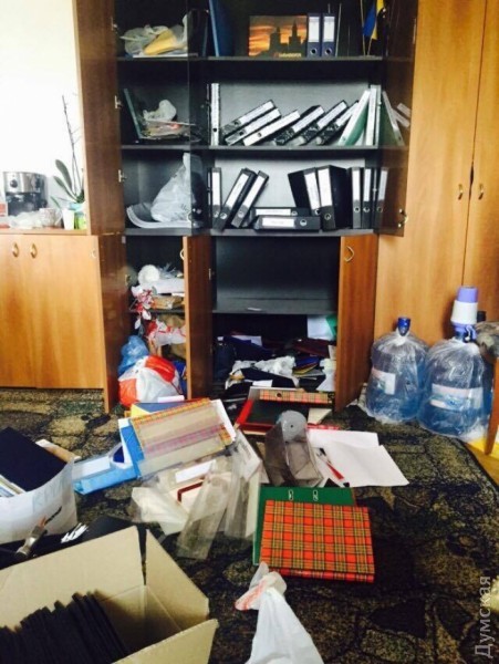 Сотрудники Одесской областной госадминистрации жалуются на прокурорских и СБУшников — после вчерашнего обыска в кабинете №524, «который не занимает глава фонда «На благо Одессы», экс-генконсул Грузии Теймураз Нишнианидзе», там полнейший беспорядок.