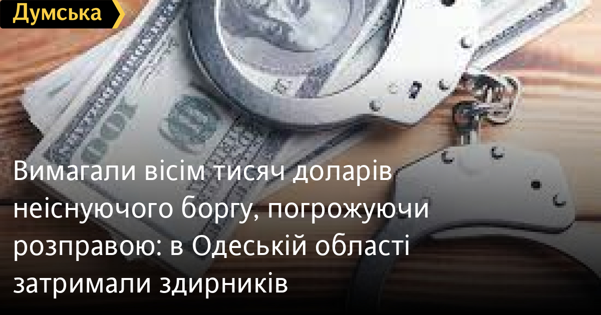 Вимагали вісім тисяч доларів неіснуючого боргу, погрожуючи розправою: в Одеській області затримали здирниківДвох чоловіків, які вимагали вісім тисяч доларів США неіснуючого боргу у жителя Одеського району, викрили правоохоронці. Зловмисників затримали на гарячому, повідомили у поліції. Фігуранти 37 та 52 років дізналися, що 31-річний житель Великодолинської селищної громади купив за дві тисячі доларів США автомобіль на виплату, і прийшли до нього нібито по гроші, але замість двох вимагали вісім тисяч — як відшкодування неіснуючих відсотків. Вони погрожували потерпілому, залякуючи фізичною розправою, а коли зрозуміли, що такої суми грошей у чоловіка немає, наказали віддати їм документи на квартиру та земельну ділянку — як відшкодування неіснуючого боргу. Документи вони отримали, а вимагання коштів та погрози не припинили. Затримали зловмисників у будинку потерпілого, коли вони в черговий раз приїхали вимагати повернути «борг». Розпочато кримінальне провадження за ч.4 ст.189 Кримінального кодексу України (вимагання, вчинене групою осіб). Підозрюваним загрожує до 12 років позбавлення волі. СМЕРТЬ РОСІЙСЬКИМ ОКУПАНТАМ! Помітили помилку? Виділяйте слова з помилкою та натискайте control-enter Новини по цій темі: 29 липня 2025: В Усатово Одеської області сталася перестрілка: поліція працює на місці (відео, оновлено) 28 липня 2025: П'яний на "Ягуарі" або гіпертонік? Звільнений топ-посадовець одеської поліції хоче повернутися на службу 19 червня 2025: Дівчинку, яку шукали сотні одеситів, знайшли вбитою: поліція працює з чоловіком, ймовірно причетним до загибелі 27 травня 2025: Увели гектар в університету: на Одещині засудили земельних аферистів, але без посадки і Хвоста |