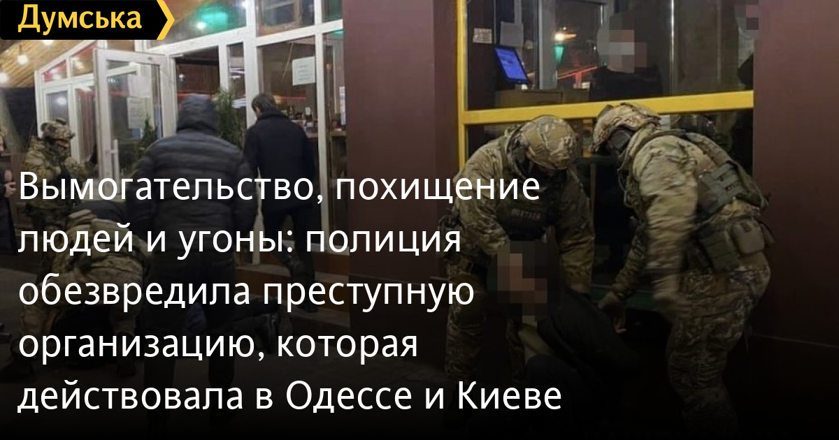 Вымогательство, похищение людей и угоны: полиция обезвредила преступную организацию, которая действовала в Одессе и КиевеПолицейские задержали десять человек, которых подозревают в вымогательстве, похищении, угоне, незаконном обращении с оружием и создании преступной группировки. Об этом сообщают в департаменте стратегических расследований Нацполиции Украины. У преступной организации было два обособленных подразделения – в Киеве и Одессе. Действовали они и в других регионах. Лидер и участники ОПГ – выходцы из другой страны. Четверых уже принудительно выдворили из Украины. Обвинительные акты в отношении пяти участников преступной организации направили в суд. Материалы по другим выделили в отдельное уголовное производство. Злоумышленникам грозит от 5 до 12 лет колонии с конфискацией имущества. СМЕРТЬ РОССИЙСКИМ ОККУПАНТАМ! Заметили ошибку? Выделяйте слова с ошибкой и нажимайте control-enter |
