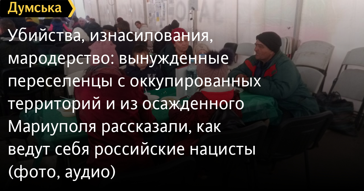 Жанна Егорова из маленького села под Мангушем Мариупольского района. Рассказывает: когда зашли российские солдаты, они облюбовали самые богатые дома. Забегали туда и начинали там жить, при этом жителей этих домов они загоняли в сараи. Оккупанты ведут себя, как свиньи: «Где жрут, там и срут», — говорит женщина. Весь мусор бросают в доме, некоторые даже не умеют пользоваться канализацией, то есть обычным сливом бачка.