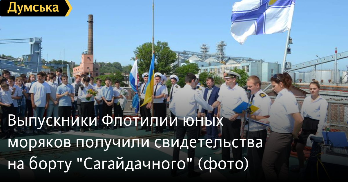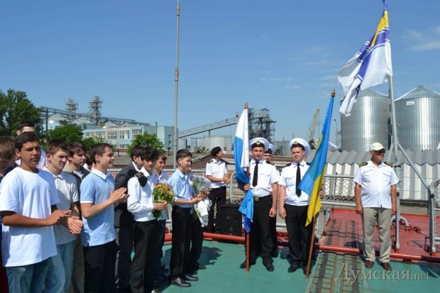 Пять десятков выпускников Черноморской флотилии юных моряков получили свидетельства об окончании обучения на борту флагмана ВМС Украины фрегата «Гетман Сагайдачный».
