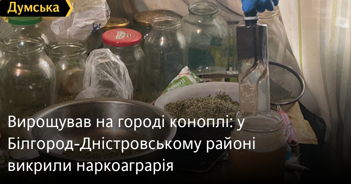 Вирощував на городі коноплі: у Білгород-Дністровському районі викрили наркоаграрія45-річного жителя Татарбунар викрили на вирощуванні конопель та виготовленні з них наркотичних речовин. Як повідомили у пресслужбі поліції Одеської області, під час санкціонованого обшуку правоохоронці знайшли в нього на присадибній ділянці насадження конопель, а в оселі — висушену та подрібнену рослинну речовину, а також пристрій для її вживання. Чоловік зізнався, що вирощував зілля та виготовляв наркотичний засіб для особистого споживання. Відомості за цим фактом внесено до ЄРДР за ч. 1 ст. 309 та 310 КК України. Максимальне покарання, яке передбачене санкціями цих статей — обмеження волі до п'яти років. Помітили помилку? Виділяйте слова з помилкою та натискайте control-enter Новини по цій темі: 29 липня 2025: В Усатово Одеської області сталася перестрілка: поліція працює на місці (відео, оновлено) 28 липня 2025: П'яний на "Ягуарі" або гіпертонік? Звільнений топ-посадовець одеської поліції хоче повернутися на службу 19 червня 2025: Дівчинку, яку шукали сотні одеситів, знайшли вбитою: поліція працює з чоловіком, ймовірно причетним до загибелі 27 травня 2025: Увели гектар в університету: на Одещині засудили земельних аферистів, але без посадки і Хвоста |