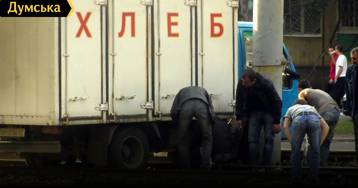 В Одессе водитель хлебовозки час блокировал движение трамваев