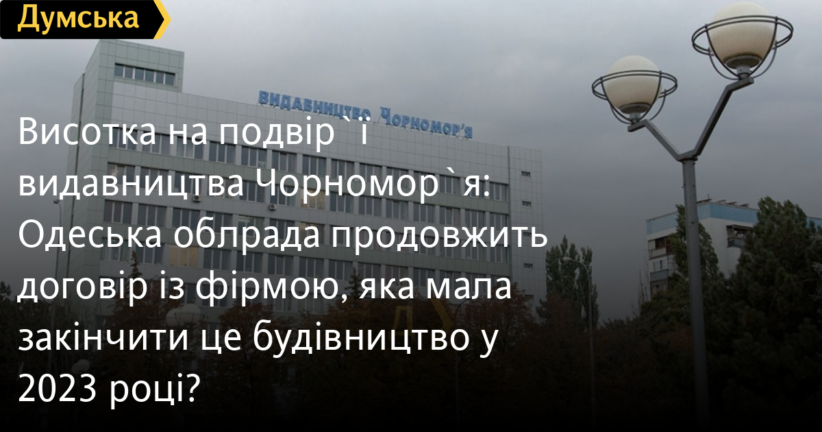 Висотка на подвір`ї видавництва «Чорномор`я»: Одеська облрада продовжить договір із фірмою, яка мала закінчити це будівництво у 2023 році?За продовження договору про будівництво 10-поверхового житлового будинку у дворі видавництва «Чорномор'я» може голосувати Одеська облрада на найближчій сесії. Проєкт рішення мають внести до порядку денного наступного засідання, передає кореспондент «Думської», у розпорядження якого потрапила доповідна записка. Повністю проєкт рішення звучить так: «Про внесення змін до інвестиційно-порядкового договору на будівництво житлового будинку з паркінгом для забезпечення житлом учасників АТО». Уперше депутати голосували за укладення договору ще 2017-го, проте будівництво, яке мало закінчитися в червні 2023-го, навіть не розпочалося. Йдеться про зведення чотирисекційного 10-поверхового житлового будинку на задньому дворі видавництва. Зараз там гаражі. Спочатку йшлося про площу забудови в 0,5 га. Сьогодні — вже 0,8 га. Термін реалізації проєкту — до 1 червня 2026 року. 16 квартир, або 10% від загальної кількості, обіцяють передати військовим. Тоді, сім років тому, лобістом питання був перший заступник голови облради Олег Радковський (так-так, політична ситуація в країні стрімко змінюється, а Радковський, як і раніше, перший заступник). За даними наших джерел в облраді, він зберіг не тільки крісло, а й зацікавленість у цьому питанні. Це, до речі, пояснює лояльність «Батьківщини» до сформованої коаліції «слуг» і ОПЗЖ в облраді. Гнучкість Радковського взагалі можна назвати легендарною. Тільки він може проголосувати за зняття з порядку денного звернення про заборону Московського патріархату в Україні, а за два дні обійматися з Епіфанієм і супроводжувати його в поїздці Одеською областю. Але в цій конкретній ситуації, коаліція, мабуть, вважала проект занадто великим, щоб проголосувати просто за лояльність. «Депутати минулого скликання розповідають легенду, що за просування питання Радковський пообіцяв розподіляти квартири за клопотанням депутатів і фракцій, що допомогло б народним обранцям підняти свій авторитет серед військових. Законність такого розподілу викликає сумніви, але тоді Радковському повірили», — розповідає джерело «Думської». Нині ж, продовжує наш співрозмовник, від Радковського зажадали серйозніших аргументів і гарантій, розглядалося навіть питання про впровадження нового засновника в компанію, яка перемогла в конкурсі. Чи дійде до сесії питання цього разу, стане зрозуміло на найближчому засіданні. СМЕРТЬ РОСІЙСЬКИМ ОКУПАНТАМ! Помітили помилку? Виділяйте слова з помилкою та натискайте control-enter