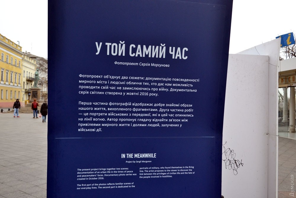 В Одессе на Приморском бульваре вчера открылась выставка работ фотографа Сергея Моргунова «У той самий час», созданная в рамках проекта «Под защитой украинских военных». По одну сторону бульвара разместили фотографии, на которых запечатлены моменты из нашей повседневной жизни, а с другой — портреты военнослужащих, которые в этот момент оказались на передовой. Выставка продлится до середины декабря. СМЕРТЬ РОСІЙСЬКИМ ОКУПАНТАМ! Помітили помилку? Виділяйте слова з помилкою та натискайте control-enter |