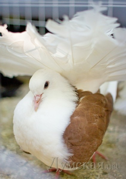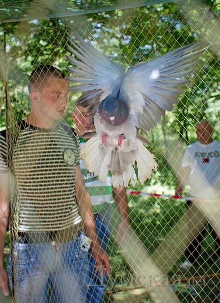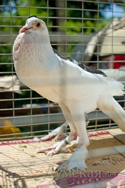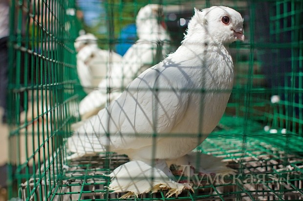 Чуть дороже — по 400-500 гривен за пару — продают английских карьеров и голубей-немцев. Были на выставке и андижанские бойные. Белоснежные самцы умеют кувыркаться прямо в воздухе, при этом громко хлопая крыльями, чтобы обратить на себя внимание самок. Обращали на себя внимание якобины, чьи шеи украшены подобием шали из перьев. Самый большой голубь на выставке – венгерский великан размером со стандартную курицу. Летает плохо, но зато неприхотлив и очень умен. Узнает голос хозяина.