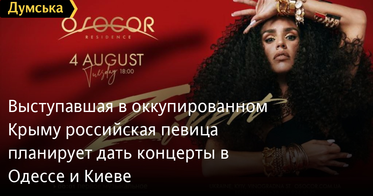 В Одессе она собирается выступить 24 июля на летней арене «Морвокзал», которой управляет компания «Квартал-Концерт», связанная с окружением президента Владимира Зеленского.