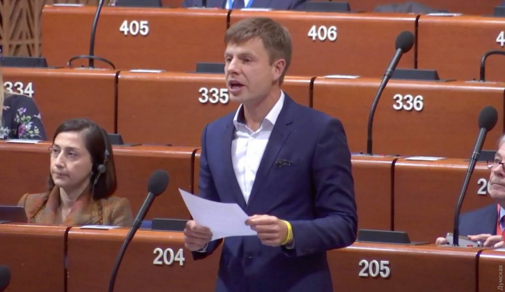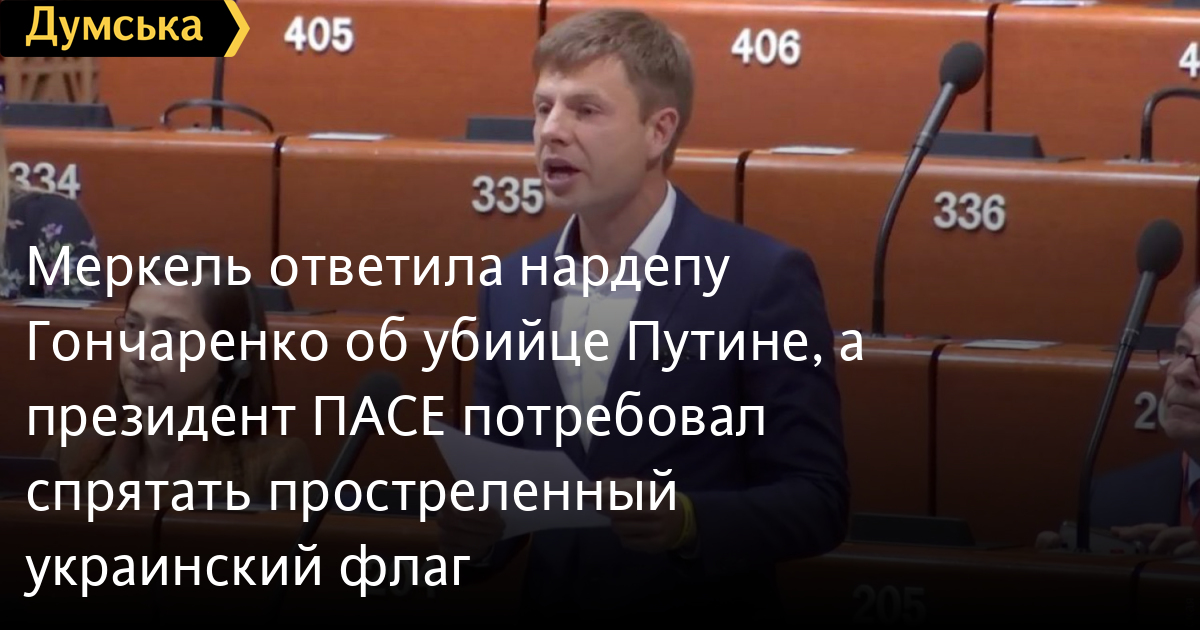 Сразу после этого президент ПАСЕ Хендрик Дамс сделал ему замечание и попросил прекратить, однако Гончаренко продолжал говорить речь с флагом в руках.