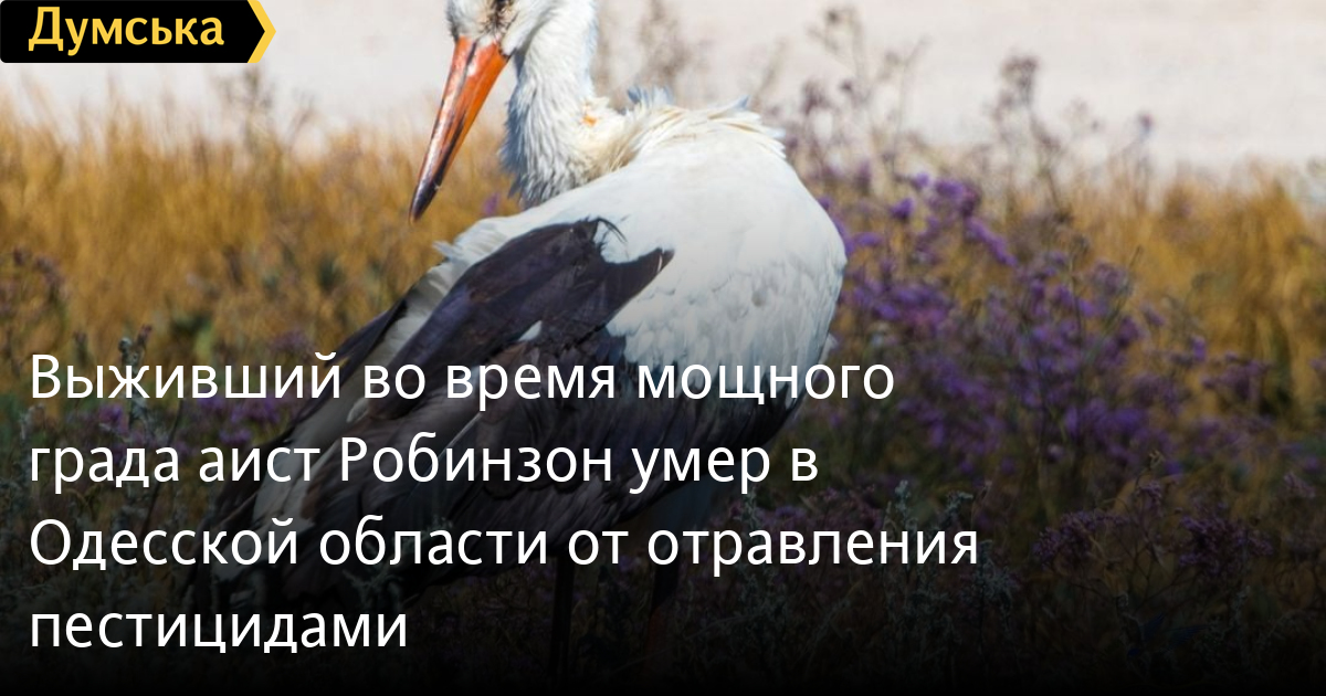 Как сообщил эколог, замдиректора нацпарка «Тузловские лиманы» Иван Руссев, он нашел труп Робинзона. Поскольку на птице нет ран или следов укусов, то он считает, что аист умер от отравления ядами, которыми сейчас обрабатывают поля от грызунов.
