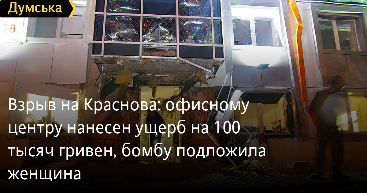 Ущерб, нанесенный бизнес-центру «Адмиральский» ночным взрывом, оценивается в 100 тысяч гривен.
