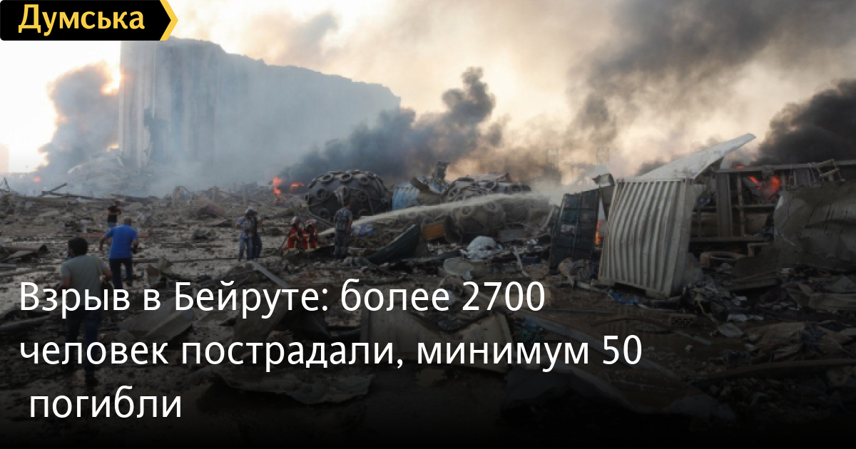 От сегодняшнего взрыва в порту Бейрута пострадали более 2750 человек и минимум 50 сейчас числятся погибшими. Об этом сообщают местные СМИ. Причина взрыва остается неизвестной. Рассматриваются разные версии — от военного нападения одной из соседних стран до взрыва нитрата натрия. Официально пока власти не говорят, что стало причиной трагедии. Завтрашний день объявлен в Ливане – днем траура. Местные СМИ сообщают о проблемах с интернетом. Более 30 команд Красного Креста и ливанская армия работают на месте трагедии. Отмечается, что волна от взрыва в Бейруте дошла до Кипра, который расположен в 250 км от столицы Ливана. СМЕРТЬ РОССИЙСКИМ ОККУПАНТАМ! Заметили ошибку? Выделяйте слова с ошибкой и нажимайте control-enter |