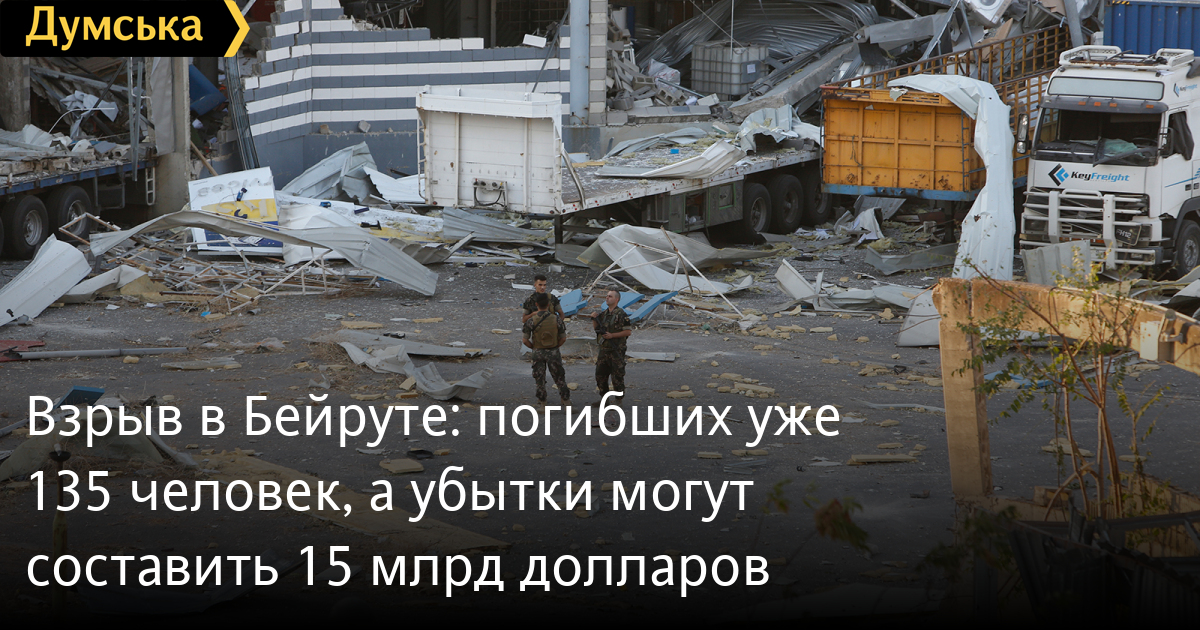 Взрыв в Бейруте: погибших уже 135 человек, а убытки могут составить 15 млрд долларовНа данное время количество жертв взрыва в порту Бейрута достигло 135 человек. Более пяти тысяч получили ранения. Еще десятки людей числятся пропавшими без вести. Об этом сообщают мировые СМИ. Общие убытки от произошедшего могут составить 15 млрд долларов. Эта цифра включает в себя и прямые, и косвенные потери, связанные с бизнесом. Как ранее заявлял губернатор города Марван Абуд, взрыв повредил и разрушил половину зданий в Бейруте. Более 300 тыс. человек остались без крыши над головой. Порт, где произошел взрыв, почти полностью уничтожен, что является серьезной проблемой для Ливана, который импортирует порядка 80% жизненно необходимых товаров, например, зерно. Напомним, мощный взрыв в порту Бейрута произошел вечером 4 августа. Взрывная волна выбила стекла и повредила здания, расположенные в десятках километров от порта. Как стало известно позднее, взорвалось 2750 тонн аммиачной селитры, конфискованные у российского судовладельца и хранившиеся на складе в порту с 2014 года. СМЕРТЬ РОССИЙСКИМ ОККУПАНТАМ! Заметили ошибку? Выделяйте слова с ошибкой и нажимайте control-enter |