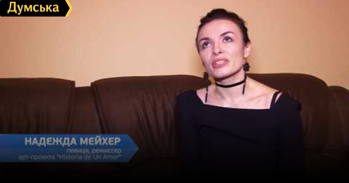 Экс-звезда «Виагры» Надежда Мейхер представляет в Одессе свой авторский арт-проект «История Де ун Амор». В музыкально-танцевальном спектакле будут исполнены песни на нескольких языках с элементами авторской поэзии певицы. СМЕРТЬ РОСІЙСЬКИМ ОКУПАНТАМ! Помітили помилку? Виділяйте слова з помилкою та натискайте control-enter Думская ТВ. Сюжеты: