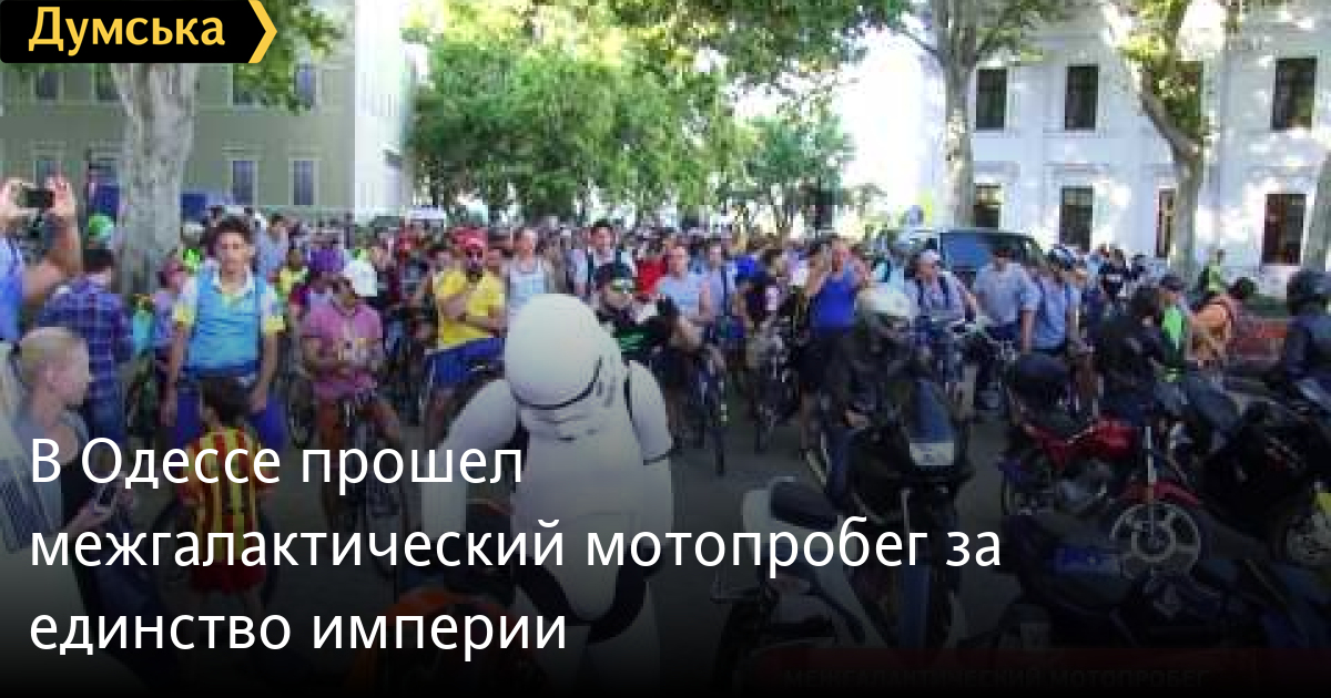 Дарт Вейдер и армия штурмовиков поддержали спортивный образ жизни. В Одессе прошел межгалактический вело- и мотопробег ради единства Империи. Подробности — в сюжете «ДумскойТВ». СМЕРТЬ РОССИЙСКИМ ОККУПАНТАМ! Заметили ошибку? Выделяйте слова с ошибкой и нажимайте control-enter Думская ТВ. Сюжеты: