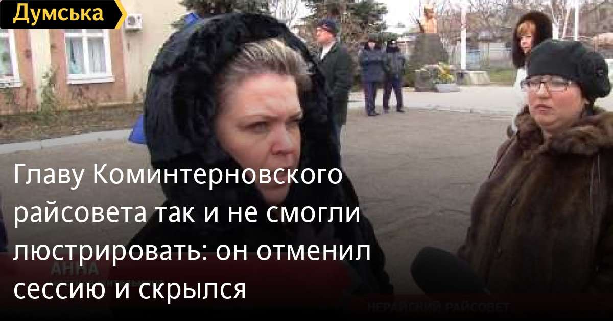 Главу Коминтерновского райсовета так и не смогли люстрировать: он отменил сессию и скрылсяДепутаты и общественные активисты требуют отставки главы Коминтерновского райсовета, бывшего регионала и председателя РГА Ивана Марзака. Но очередная сессия собрания, на которой чиновника планировали «люстрировать» была отменена, а сам он исчез. Подробности — в сюжете «ДумскойТВ». СМЕРТЬ РОССИЙСКИМ ОККУПАНТАМ! Заметили ошибку? Выделяйте слова с ошибкой и нажимайте control-enter Новости по этой теме: 13 апреля 2023: Первый заместитель начальника Одесской областной военной администрации назначил сам себя и.о. губернатора: он начинал в КГБ и подлежит люстрации 18 января 2023: Очищение от люстрации: экс-таможенник снова станет главным защитником прав потребителей Одесской области 21 сентября 2022: Очистившийся от люстрации экс-таможенник восстановился в должности главного защитника прав потребителей в Одесской области 11 ноября 2021: В Одесской области суд признал незаконной люстрацию одиозного чиновника времен Януковича, отправлявшего титушек на Майдан |