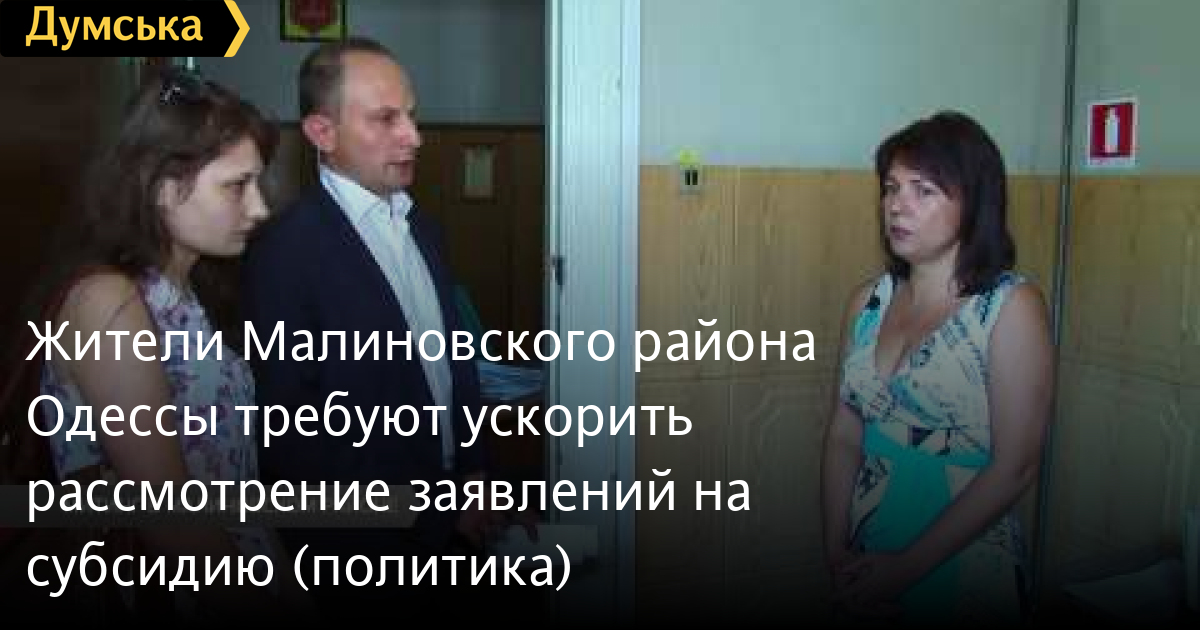 Жители Малиновского района Одессы требуют ускорить рассмотрение заявлений на субсидию (политика)В Малиновском районе одесситы во главе с членами партии «Солидарность» Блок Петра Порошенко вышли требовать более оперативного рассмотрения заявлений на субсидию. Митинг у стен районного управления департамента труда и социальной политики собрал тех, кто месяцами не может получить ответа от госструктуры. Более полугода в общественных приемных партии людям помогают оформлять субсидии. Однако дело стопорится в департаменте труда и социальной политики. «Каждый раз обещают, обещают, но ничего не делают. Люди жалуются, что платить уже нужно по тарифам, а, когда будет оформлена субсидия, неизвестно»,- говорит юрист общественной приемной партии Юлия Чухало. «Я уже два месяца жду эту субсидию, а толку никакого. И ничего не говорят», — сетует одесситка Нина. Во время митинга руководитель ячейки партии «Солидарность» Блок Петра Порошенко в Малиновском районе Андрей Ивашов обратился за разъяснениями к начальнику управления. Она объяснила, что задержки связаны с техническими неполадками. Кроме того, в этом году оформлять субсидию пришло в два раза больше людей. В департаменте пообещали наладить работу до 1 сентября. СМЕРТЬ РОССИЙСКИМ ОККУПАНТАМ! Заметили ошибку? Выделяйте слова с ошибкой и нажимайте control-enter Думская ТВ. Сюжеты: