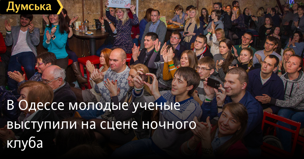Первый в Украине Science Slam – выступление молодых ученых в формате стенд-ап, разрушающее стереотипы о высокой науке, прошел 30 ноября на сцене арт-клуба «Шкаф». За десять минут кандидаты наук, младшие научные сотрудники и аспиранты рассказали аудитории о своих научных исследованиях и изобретениях без сложных терминов, заумных графиков и малопонятных таблиц. Такого суммарного IQ ночной клуб, пожалуй, не видел никогда. Вместе с тем, ученые мужи и девушки легко перевоплотились в мастеров разговорного жанра: с хорошей долей иронии они рассказывали о предмете своих исследований, придумывали интересные аналогии из жизни для описания сложнейших научных процессов, легко общались с аудиторией. Первым на сцену вышел молодой биолог Евгений Соколов, изучающий сложнейшие процессы, происходящие в лиманах северо-западного Причерноморья и разработавший систему научных рекомендаций, способных защитить наше лиманное богатство от чрезмерной антропогенной нагрузки. Проблема, затронутая молодым биологом, оказалась настолько актуальной, что сразу после окончания доклада молодая гостья призналась ученому в любви, чем вызвала шквал аплодисментов аудитории. Психолог Ксения Черных рассказала о современных методиках для восстановления психического здоровья детей, победивших смертельные болезни. Хитом выступления стала демонстрация специального приспособления для борьбы со стрессом — стаканчика для крика. Археолог Дмитрий Киосак — эксперт в неолитическом периоде — легко и доступно, как говорят ученые «убедительно доказал», что еще семь тысяч лет назад европейцы ничем не отличались от племен населявших территорию современной Украины. Преподаватель одесского «нархоза» Анна Коцюрубенко рассказала, как рассчитать семейный бюджет, опираясь на значения реального, а не рекомендуемого государством прожиточного минимума. Химик, лауреат премии Верховной рады, Егор Тимухин, создающий в своей лаборатории покрытия для оптических приборов, на ярких примерах объяснил присутствующим, чем отличается физик от химика, что такое интерференция и резистентное испарение в вакууме. Победителя Science Slam определяли по громкости аплодисментов, которую замеряли специальным прибором – шумомером. В результате победителем стала психолог Ксения Черных, на 0,4 децибела опередившая ближайшую соперницу Анну Коцюрубенко. По сложившейся традиции, кроме ценных призов, победительница получила в подарок боксерские перчатки. Как рассказала «Думской» организатор одесского Science Slam , председатель областного совета молодых ученых Светлана Декина, следующая научная битва пройдет в начале 2015 года, а заявки на участие можно подавать уже сейчас. «Учитывая большой интерес к нашему мероприятию, мы начали планировать проведение следующего слэма уже сейчас. Скорее всего, он пройдет в начале следующего года, а его участником сможет стать любой одесский ученый», — рассказала Светлана. Желающие поучаствовать в следующей научной битве, могут присылать свои заявки на электронный адрес Напомним, этот проект пришел в Украину из Германии, где в первый раз в современном формате Science Slam прошел в 2010 году. Организаторами Science Slam в Украине стал Одесский областной совет молодых ученых и медиа-холдинг «Думская». Победитель, кроме ценных призов от генерального спонсора — ведущего фармацевт