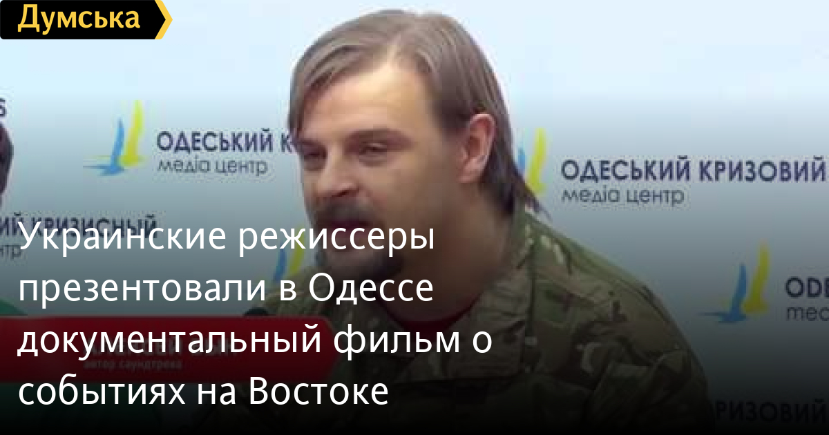 Украинские режиссеры презентовали в Одессе документальный фильм о событиях на ВостокеВоенное кино в Одессе. Украинские режиссеры презентовали документальный фильм «Добровольцы Божьей Четы». Кинотворцы пытались передать реальные события, просходящие на востоке Украины. Подробности — в сюжете «Думской ТВ». СМЕРТЬ РОССИЙСКИМ ОККУПАНТАМ! Заметили ошибку? Выделяйте слова с ошибкой и нажимайте control-enter Думская ТВ. Сюжеты: