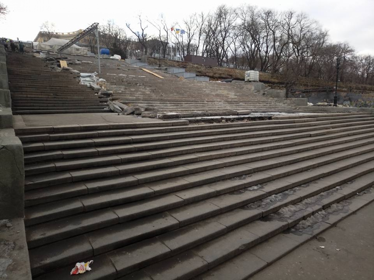 Не только Потемкинская лестница, но и склоны Приморского б-ра уже являются собственностью громады. Где акты проведенной проверки компании подрядчика выполняющего ремонт общественниками?