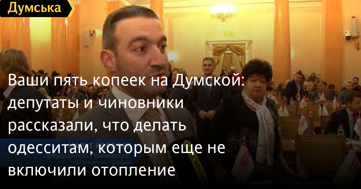 Ваши пять копеек на «Думской»: депутаты и чиновники рассказали, что делать одесситам, которым еще не включили отопление«Ваши пять копеек» — постоянная рубрика «Думской.ТВ». На сей раз коллеги спросили депутатов и чиновников, что делать одесситам, у которых до сих пор холодные батареи. Ответы получились — огонь! СМЕРТЬ РОССИЙСКИМ ОККУПАНТАМ! Заметили ошибку? Выделяйте слова с ошибкой и нажимайте control-enter Думская ТВ. Сюжеты: