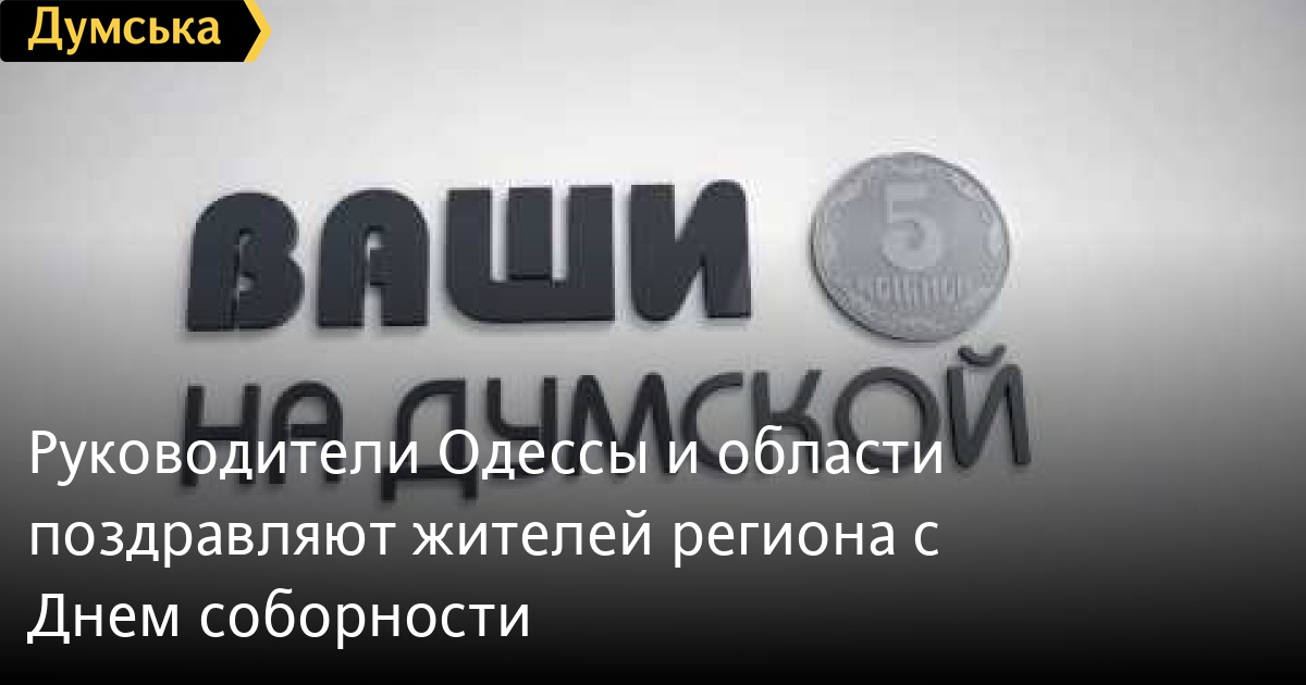 Первые лица Одессы и области приняли участие в опросе «ДумскойТВ» о праздновании Дня соборности. Свои пожелания озвучили губернатор Максим Степанов, председатель облсовета Анатолий Урбанский и мэр Одессы Геннадий Труханов: Напомним, День соборности Украины отмечается ежегодно 22 января в день провозглашения в 1919 году Акта воссоединения Украинской Народной Республики и Западно-Украинской Народной Республики. В связи с праздничными мероприятиями в районе парка Шевченко будет временно ограничено движение транспорта. СМЕРТЬ РОССИЙСКИМ ОККУПАНТАМ! Заметили ошибку? Выделяйте слова с ошибкой и нажимайте control-enter Думская ТВ. Сюжеты: