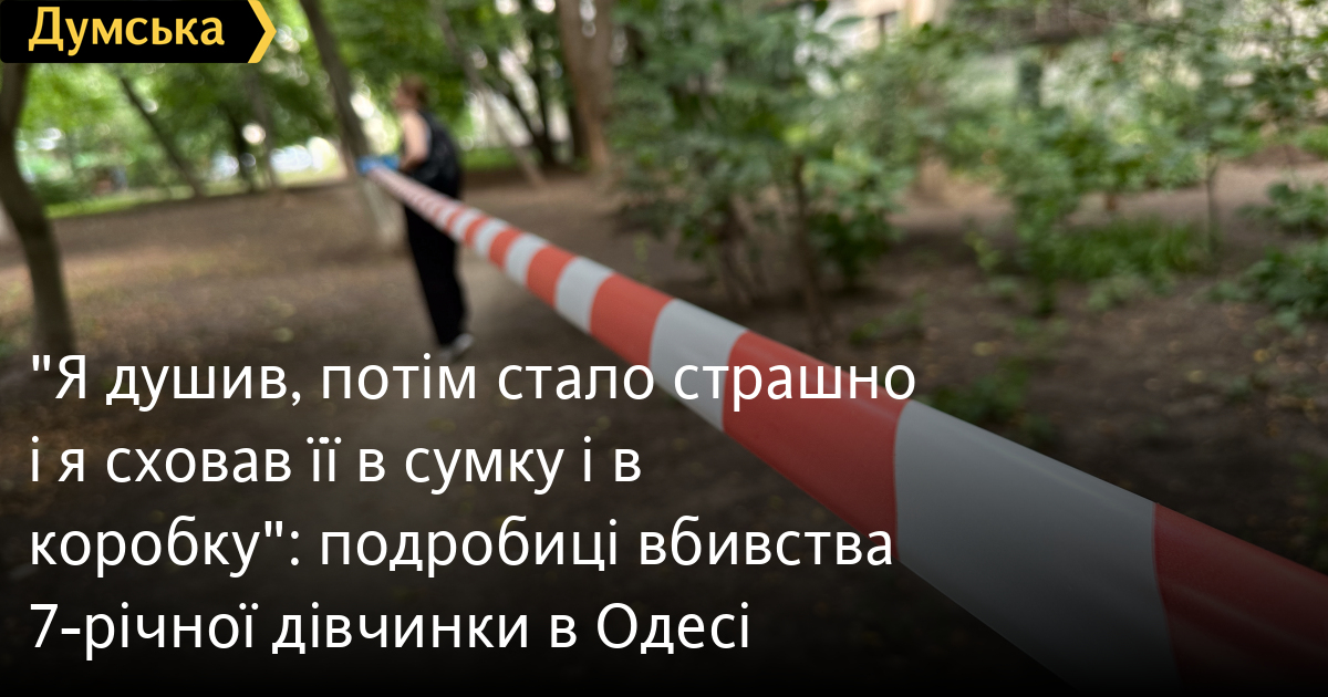 «Я душив, потім стало страшно і я сховав її в сумку і в коробку»: подробиці вбивства 7-річної дівчинки в Одесі31-річний одесит, затриманий у справі про вбивство 7-річної Соломії Тарасюк, розповів подробиці злочину. Відео зі зізнаннями чоловіка опублікувала Нацполіція України. «Я її душив, потім мені стало страшно, що вона не дихає. І сховав у сумку і в коробку. Коробку вивіз в інший район», — каже фігурант. За даними слідства, чоловік живе поруч з родиною дитини. Дівчинка знала сусіда, тому пішла з ним до нього додому, де він її і вбив. А щоб замести сліди, перевіз тіло за кілька кварталів і кинув у підвалі. Попередньо, причина смерті — удушення. Точну причину встановить судово-медична експертиза. Поліцейські направили на експертизу речові докази. Криміналісти зібрали біологічні сліди і біологічні зразки вбитої та фігуранта. Крім того, чоловік був у розшуку військкомату. Вирішується питання про повідомлення йому про підозру в умисному вбивстві дитини і обрання запобіжного заходу. Йому загрожує довічний термін. Нагадаємо: семирічна Соломія зникла вчора ввечері з двору. Про це мати повідомила в поліцію вночі. Сім'я раніше не потрапляла в поле зору правоохоронців. Дитину шукали без перебільшення сотні волонтерів і поліцейських. Сім'я Соломії — переселенці з Херсона. Є інформація, що фігурант — психічно хворий. СМЕРТЬ РОСІЙСЬКИМ ОКУПАНТАМ! Помітили помилку? Виділяйте слова з помилкою та натискайте control-enter |