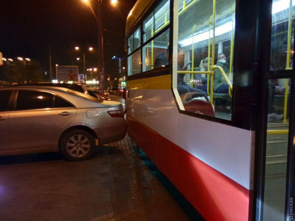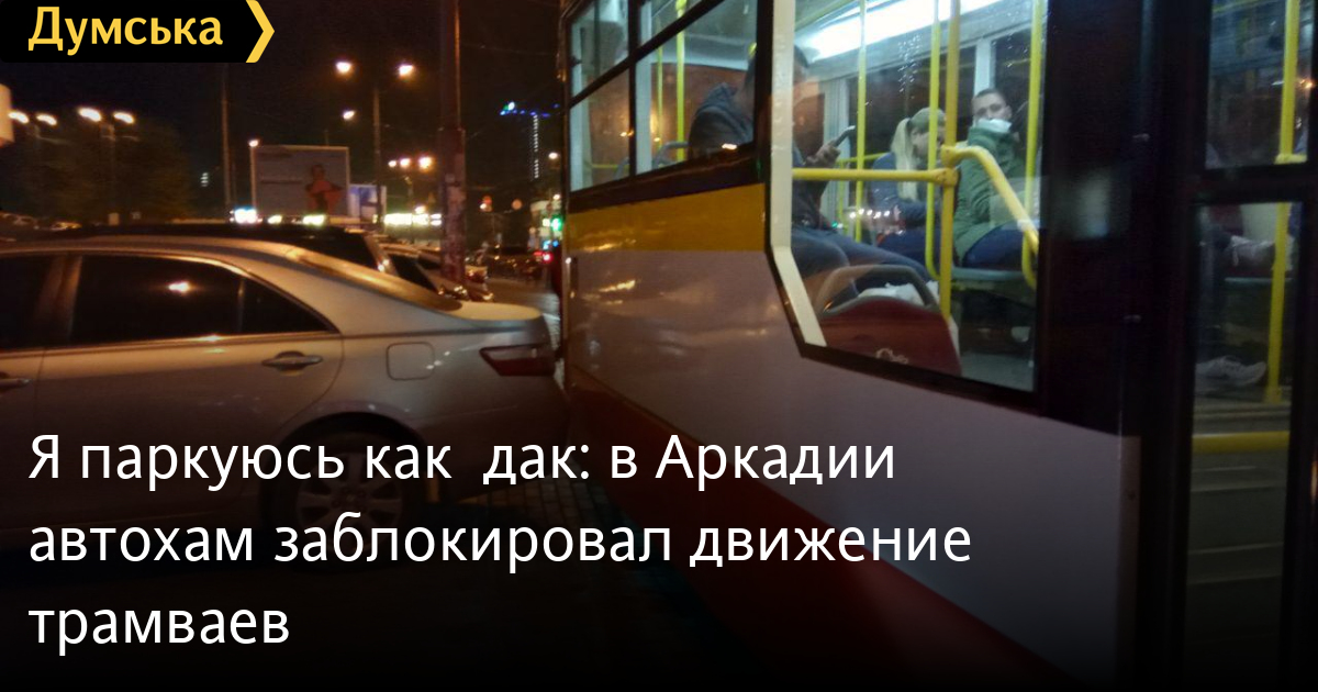 В Аркадии прямо возле «Гагарин плаза» автохам припарковал свой автомобиль так, что заблокировал движение трамваев маршрута №5.