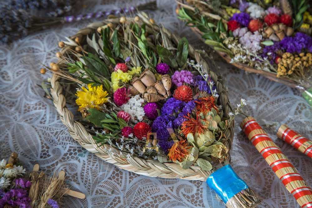 Засветло у городских храмов разложили свой товар торговцы праздничной атрибутикой. В основном это всевозможные плетеные обереги из разнотравья, передает корреспондент «Думской».