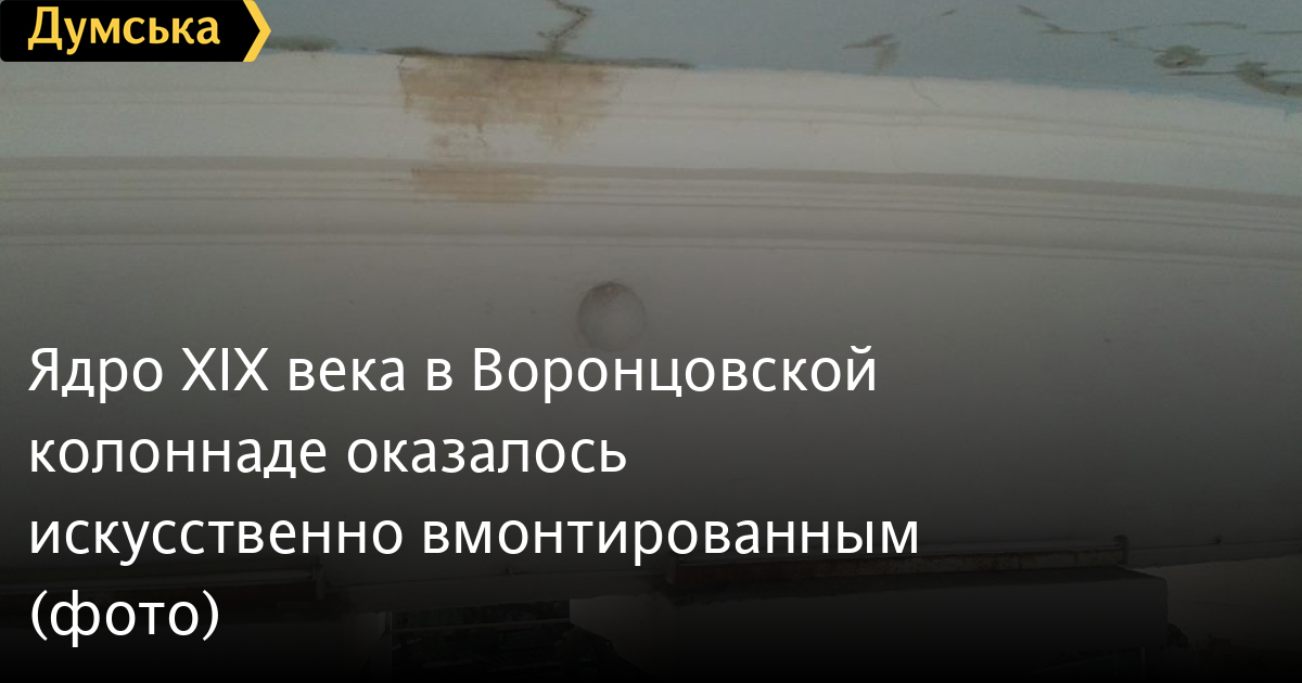 Ядро XIX века, засевшее во внутренней части антаблемента Воронцовской колоннады, оказалось искусственно вмонтированным.