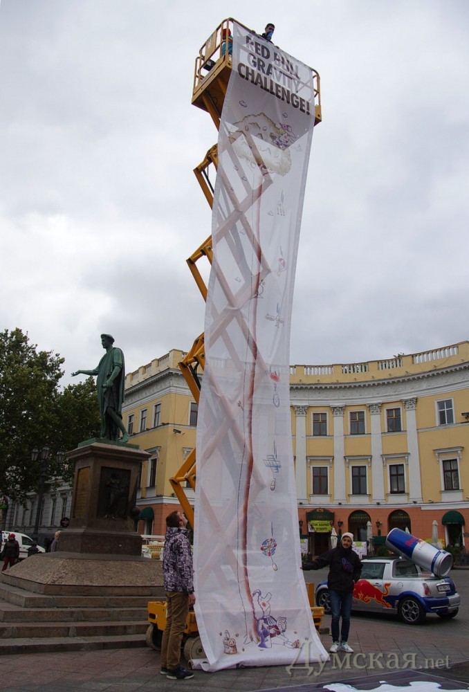 Энергетический напиток, известный не только своими агрессивным химическим воздействием на организм, но и эпатажной рекламной политикой, захватывает Одессу. Банки с «красным бычком» продаются у нас довольно давно, но настоящий рекламный ивент данной торговой марки состоялся впервые. Если помните, прошлая попытка производителя энергетиков поразить воображение одесской публики сорвалась из-за противодействия ректората экономического университета. Впрочем, и анонсированное на сегодня действо нельзя назвать полноценным. У памятника Дюка хотели устроить своеобразное состязание доморощенных инженеров. Задание — создать креативный аппарат площадью не больше одного квадратного метра, который поможет сбросить сырое куриное яйцо с пятнадцатиметровой высоты так, чтобы оно коснулось земли и не разбилось. «Думская», само собой, явилась в указанное организаторами время на Приморский бульвар, но не тут-то было. Представители компании объявили, что мероприятие отменяется: из заявленных пятнадцати команд до места проведения Gravity challenge добралась лишь одна, а посему, мол, в проведении конкурса смысла нет. Но чтобы не расстраивать зрителей, единственный участник все же запустил свой летательный аппарат, после чего на высоту 15 метров начали поднимать всех желающих. СМЕРТЬ РОСІЙСЬКИМ ОКУПАНТАМ! ![]() Единственный участник несостоявшихся соревнований - команда Seagulls. Их летательный аппарат из пластиковых досок, губок для мытья посуды и порезанного полиэтилена Помітили помилку? Виділяйте слова з помилкою та натискайте control-enter |