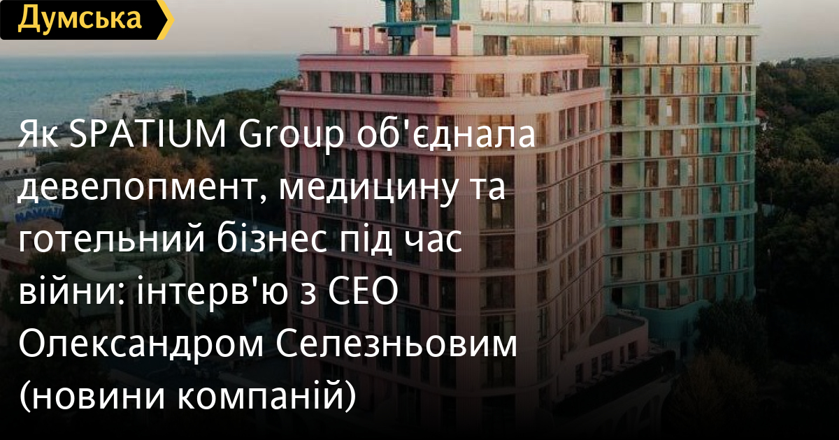 Як SPATIUM Group об'єднала девелопмент, медицину та готельний бізнес під час війни: інтерв'ю з СЕО Олександром Селезньовим (новини компаній)СЕО та власник девелоперської компанії SPATIUM Group Олександр Селезньов розповідає про те, як компанія не просто вижила, а й кардинально трансформувалася під час чотирьох років війни, перетворивши кризу на потужний каталізатор для розвитку на перетині девелопменту, медицини та готельного бізнесу. Як вплинули чотири роки війни на вашу компанію? Війна — це, безсумнівно, найжорстокіше випробування. Війна — напевно, одна з найтяжчих криз. А криза або назавжди зупиняє, або, навпаки, створює умови та примушує рухатися швидше. Для нас вона стала каталізатором структурного ускладнення бізнесу. Ми були змушені уповільнити темпи будівництва: кількість інвестицій і попит на нове житло зменшились у десятки разів за роки, коли Одеса перебувала у «сірій зоні». Однак паралельно ми різко пришвидшили розвиток наших другого та третього стратегічних напрямків — медицини та готельного бізнесу. Це не означає, що ми зупинилися у будівництві. Ще 10 травня 2022 року, першими в Україні, ми ввели в експлуатацію один із наших ЖК за класом наслідків СС-3. Загалом за час війни ми пройшли 12 державних комісій (до війни їх було лише 8). Але це означає, що з 22 будівель, які ми планували здати у 2023–2024 роках, частину ми добудовуємо лише зараз. Навіщо така зміна типу діяльності? Це не зміна, це розвиток. Розвиток для нас — це структурне ускладнення в напрямку цінностей. Ми будуємо не просто квадратні метри. Ми створюємо образ життя, втілюючи його фундаментальні складові. Цей образ життя вимагає, окрім самого «Пространства», забезпечення, в першу чергу, фізичного здоров'я (самого життя). Досліджуючи реабілітаційні аспекти якості життя, ми ще у 2008 році отримали патент на визначення «кількості здоров'я». Наша клініка реабілітаційної медицини вже з квітня 2022 року активно долучилась до дослідження та впровадження процесів реабілітації. Асоціація реабілітаційного менеджменту координує розробку, підготовку фахівців та впровадження найсучасніших практик. Ми будуємо реабілітаційні центри безпосередньо в наших ЖК, забезпечуючи разом із сімейною та патронатною медициною простір здоров'я для наших мешканців. Готелі — це наступна складова цієї платформи образу життя. Наша мета — впровадити сервіс п'ятизіркового готелю в ЖК. Ми вже зробили перші кроки: збудували та ввели в експлуатацію ARCHotel на 250 номерів, п'ятизірковий готель на Аркадійській алеї. Ми створили власну керуючу компанію, щоб перенести ці стандарти обслуговування у наші житлові комплекси. Що несподіваного було для вас у такому розширенні діяльності? Несподіванкою стало усвідомлення того, як спрацьовує принцип платформи: коли ти добре опанував 2–3 традиційні бізнеси, їхнє об'єднання дає інновацію. Наприклад, ми будуємо приватний пологовий будинок-готель у колаборації з відомою клінікою «Лелека». Це об'єкт із найсучаснішими інноваціями та стандартами безпеки. Зокрема, операційні та пологові відділення будуть розташовані у бомбосховищі/укритті. При цьому комплекс матиме інфініті-басейн на 7 поверсі, ресторан, СПА, зимовий сад та п'ятизірковий готель, що є доповненням до найсучаснішої медицини. Об'єднавши медицину та готельний бізнес, ми отримали санаторій. Цей формат був незаслужено 