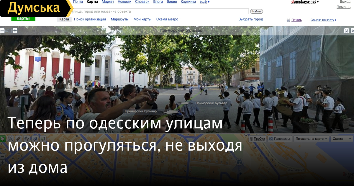 На Яндекс.Картах появились панорамы Одессы и Ильичевска. Теперь пользователи могут не выходя из дома оказаться на площади 10-го Апреля или прогуляться от Оперного театра до Воронцовского дворца, посмотреть на порт с Тёщиного моста.