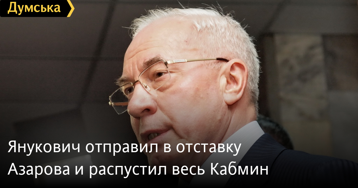 «Руководствуясь статьей 115 Конституции Украины и в соответствии с пунктом 9 части первой статьи 106 Конституции Украины постановляю принять отставку премьера Азарова Николая Яновича, что влечет отставку всего состава Кабинета Министров Украины», — сказано в указе президента.