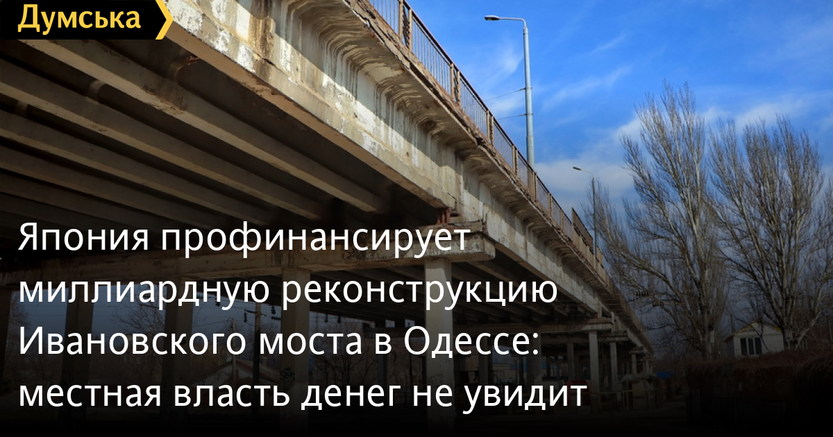 Японія профінансує мільярдну реконструкцію Іванівського мосту в Одесі: місцева влада грошей не побачитьБлизько півтора мільярда гривень збирається виділити Японія на реконструкцію аварійного Іванівського шляхопроводу в Одесі, але місто не отримає прямого доступу до цих грошей. Фінансування очікується у 2026 році, а почати будівництво в мерії обіцяють вже у 2027-му, повідомив глава департаменту економічного розвитку Одеської міськради Андрій Розов. В ексклюзивному коментарі «Думській» чиновник зазначив, що реалізація проєкту буде повністю контролюватися японським державним агентством міжнародного співробітництва (JICA). А механізм роботи він порівняв з програмами ЄБРР і Європейського інвестиційного банку, коли закупівлі відбуваються тільки за міжнародними стандартами через власні департаменти фінансових інститутів. «Проєкт не просто фінансується Японією — він буде здійснюватися і реалізовуватися японськими компаніями. Всі тендерні процедури проведе виключно JICA. Одеса цих коштів взагалі не побачить — вони проходять між японськими міністерствами та агентством», — підкреслив Розов. Коментуючи суму проєкт, глава департаменту пояснює, що згадані 1,7 млрд грн є приблизними та базуються на старій концепції 2019–2020 років. Фактична вартість стане відома тільки після проведення нового етапу проєктування, який також куруватиме японська сторона. При цьому майбутній міст буде принципово відрізнятися від того, що розробляли українські проєктувальники кілька років тому. Спочатку передбачався класичний залізобетонний шляхопровід, проте японці запропонували повністю сталеву конструкцію. «Японці пропонують зробити не залізобетонний, а сталевий міст, — каже Розов. — Таких у нас практично немає. Його термін служби — 100 років, і єдине обслуговування, яке йому потрібно, — одне грамотне фарбування раз на 50 років. Ми навіть просили японську сторону включити це фарбування до переліку робіт». За його словами, основні елементи майбутнього мосту будуть вироблятися безпосередньо в Японії, після чого їх доставлять в Україну. Монтаж виконає компанія, яку обере японська сторона в міжнародному тендері. Депутат міськради Петро Обухов і голова транспортної комісії вважає, що місту потрібен принципово новий вузол — з тунелем, зручною розв'язкою і навігацією для пішоходів і велосипедистів. «Якщо нам дають гроші, хотілося б бачити сучасне рішення. Є прекрасна концепція архітекторів, і, на мою думку, потрібно реалізовувати щось подібне. Проста перебудова моста не вирішує нинішніх проблем — відчуженості території, відсутності зв'язку із залізницею. Тут логічно проєктувати станцію, продумувати продовження трамвая. На ці питання проєкт не дає відповіді», — зазначив Обухов. Нагадаємо, Іванівський шляхопровід, побудований у 1967 році, був визнаний аварійним ще до повномасштабної війни: він забезпечує найважливіший виїзд з міста, але за весь час експлуатації жодного разу не проходив капітальний ремонт. Одеська мерія у 2021 році погодила реконструкцію Іванівського мосту і видала містобудівні умови на проведення робіт. У червні 2022 року було підписано договір про капітальний ремонт так званої Овідіопольської Дуги (дороги в обхід) на суму 161 млн грн. Планувалося, що шляхопровід подовжать у бік Овідіопольської дороги, а під ним розширять проїзд і орган