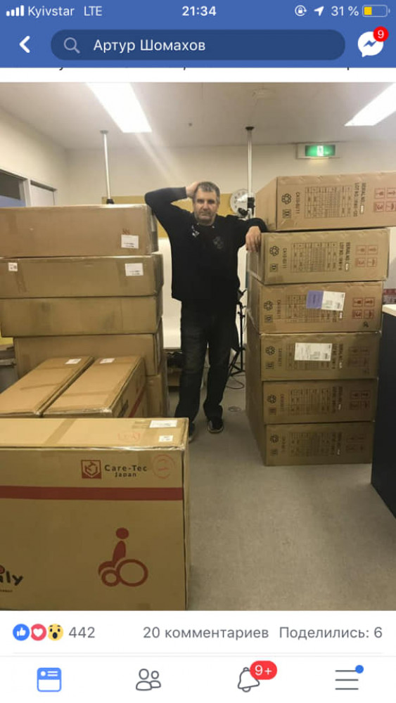 Как рассказал волонтер Артур Шомахов, который организовал в Японии акцию по покупке колясок, идея отправить контейнер с гуманитарной помощью пришла после того, как его фонду качественную инвалидную коляску подарил парень из Украины.