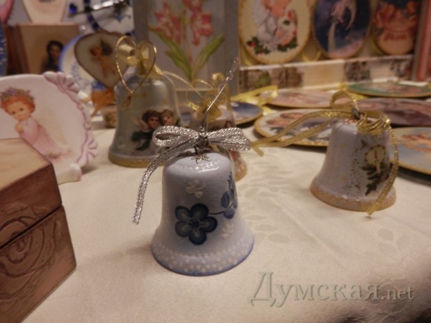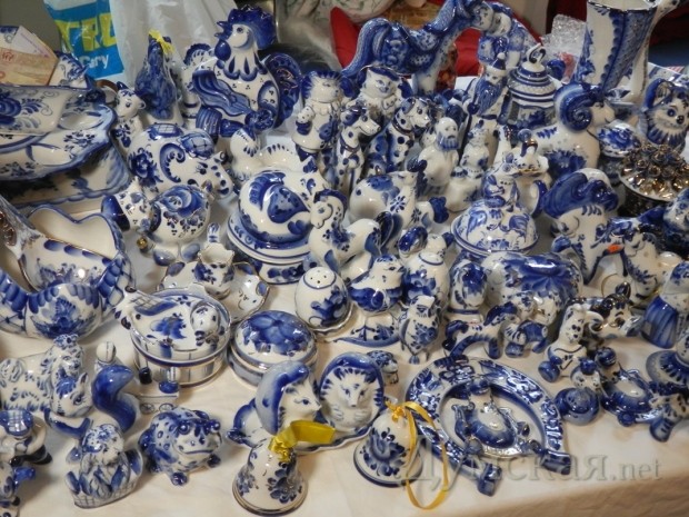 Привлекает внимание стенд с русской гжелью. Самая маленький керамический шедевр стоит 80 грн.