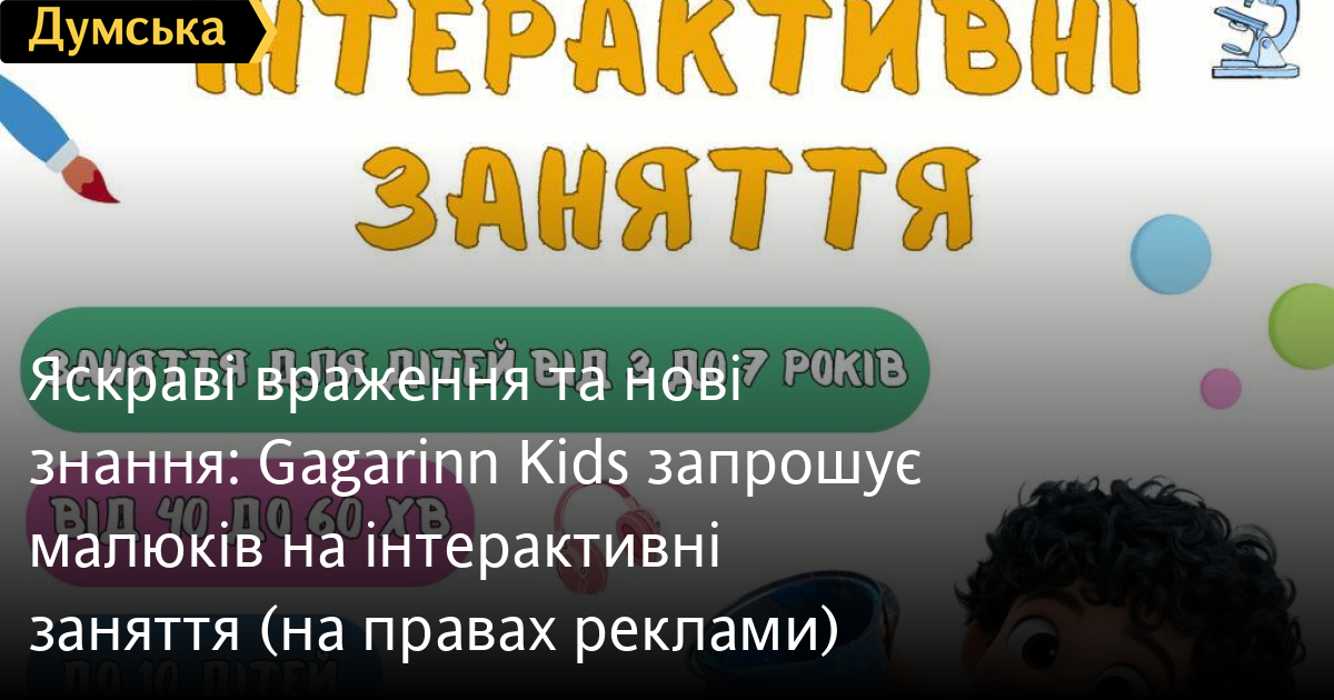 Яскраві враження та нові знання: Gagarinn Kids запрошує малюків на інтерактивні заняття (на правах реклами)Запрошуємо малюків на інтерактивні заняття Gagarinn Kids! Це чудова можливість весело провести час, розвинути творчість, уяву та комунікативні навички. Наші заняття створені для дітей віком від 3 до 7 років — ми гарантуємо цікаві завдання, активні ігри та море позитивних емоцій! Вартість — 100 грн за одну дитину Долучайтеся! ТРК Gagarinn Plaza , 4 поверх , вул Генуезька 5 СМЕРТЬ РОССИЙСКИМ ОККУПАНТАМ! Заметили ошибку? Выделяйте слова с ошибкой и нажимайте control-enter |