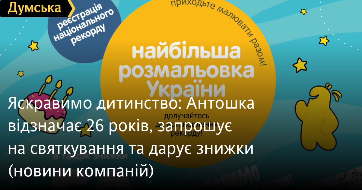 Яскравимо дитинство: «Антошка» відзначає 26 років, запрошує на святкування та дарує знижки (новини компаній)Мережа дитячих магазинів «Антошка» відзначає 26-й День народження та з 26 вересня до 2 жовтня дарує кожному незабутнє свято. Маленькі українці об’єднаються задля великої і яскравої картини, створеної дітьми із різних міст країни, – це так символічно і так гарно! З 26 вересня завітайте з дітьми до магазину мережі (адресу найближчого магазину оберіть за посиланням). Там на вас чекатиме куточок творчості з унікальною розмальовкою мрій 1,5 на 1,5 м. В кожному з магазинів можна розфарбовувати одну з частин, а наприкінці усі фрагменти зберуть в Одесі та зафіксують новий рекорд України! «Віримо, що кожен день життя дитини можна зробити позитивним та яскравим: адже навіть чорно-білі лінії стають барвистими, якщо додати трохи фарб і кольорових олівців. Долучайтеся до свята, оскільки усі дитячі мрії загадані в магазині «Антошка», обовʼязково здійснюються!» — зазначають в мережі. Крім того, до дня народження імениннику дарує знижки на товари до -50% — саме час придбати омріяну іграшку або модний одяг для вашої малечі. Зазначимо, що національну мережу дитячих магазинів «Антошка» заснували у 1997 році. Наразі до неї входять 43 магазини в 18 містах України та інтернет-магазин antoshka.ua. Мережа пропонує широкий асортимент товарів для дітей, включаючи іграшки, одяг, взуття, товари для гігієни та харчування, меблі, товари для прогулянок та подорожей. Також «Антошка» розвиває найбільшу мережу дитячих перукарень. Станом на вересень 2023 працює 15 таких закладів в 7 містах (розташовані в магазинах мережі). СМЕРТЬ РОСІЙСЬКИМ ОКУПАНТАМ! Помітили помилку? Виділяйте слова з помилкою та натискайте control-enter |
