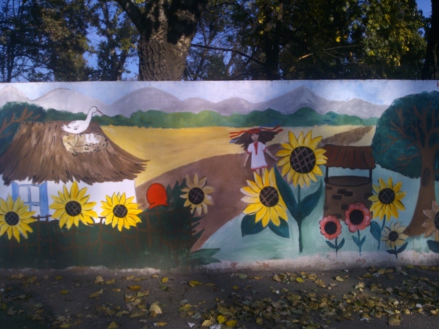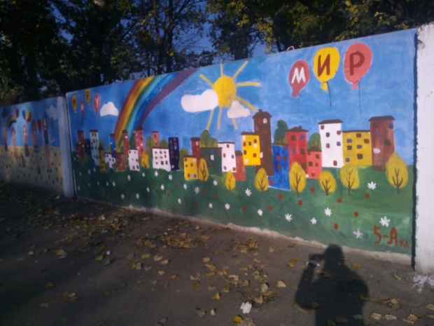 Учащиеся детской школы искусств города Измаила раскрасили серый забор ОШ № 7 по улице Шевченко патриотическими граффити.