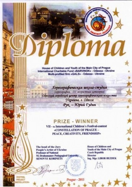 Воспитанники Одесского городского центра хореографического искусства приняли участие в IV Международном фестивале детского и юношеского творчества «Созвездия Праги – мир, творчество, дружба».В нем также участвовали хореографические коллективы из Болгарии, Германии, Греции, Казахстана и многих других стран.