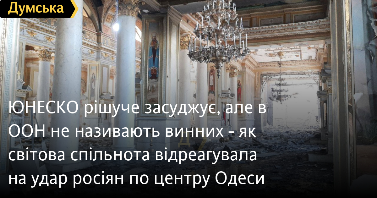 «Думська» зібрала реакції світової спільноти на ракетний удар по центру Одеси, завданий російськими нацистами вночі 23 липня, в результаті якого постраждали Спасо-Преображенський кафедральний собор, низка пам'яток архітектури та житлові будинки.
