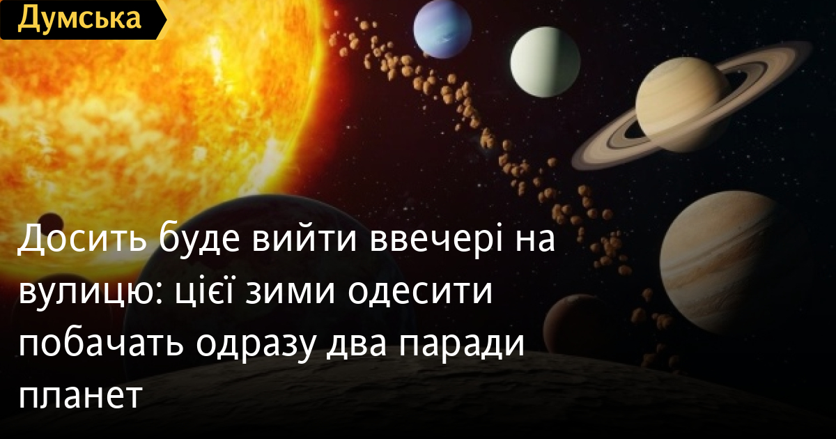 Досить буде вийти ввечері на вулицю: цієї зими одесити побачать одразу два паради планетОдразу сім планет Сонячної системи на зоряному небі зможуть побачити одесити двічі цієї зими. Як повідомив голова Одеського астрономічного товариства Михайло Рябов, перший парад розпочнеться 21 січня і триватиме сім-десять днів. Вечірньої пори, якщо небо буде безхмарним, люди зможуть спостерігати щонайменше чотири планети, витягнуті в дугу — Марс, Юпітер, Венеру і Сатурн. «Для того, щоб побачити цю красу на власні очі, достатньо буде вийти на вулицю і подивитися на зоряне небо у східному напрямку. Робити це можна одразу після заходу сонця, якщо не буде хмар. В останній день лютого до них приєднається Меркурій. У так званому параді візьмуть участь і Уран із Нептуном, але їх неозброєним оком не побачиш, тут потрібно йти в обсерваторію і дивитися в телескоп», — пояснив учений. Він додав, що з погляду науки парад планет ніяк не впливає на життя людей. «Реально впливає Сонце з його спалахами, коли в людини голова стає чавунною, Місяць впливає з його припливами, а більш віддалені планети — ні», — підкреслив Михайло Рябов. Зовсім іншої думки про це явище дотримуються астрологи та езотерики. Останні переконані, що парад планет має особливе значення і впливає на тонкі енергії Землі та всього людства. «Це час, коли люди можуть налаштуватися на вищі вібрації, дослухатися до свого внутрішнього голосу і працювати над своїм духовним розвитком, — каже астропсихологиня Світлана Буланова. — Парад планет здатний впливати на особисте життя, спричиняючи важливі події або зміни в долі людини. Це може бути часом завершення старих циклів і початку нових. Для обізнаних людей це можливість удосконалюватися в духовних практиках, медитаціях і саморозвитку». Нагадаємо, що парад планет — це астрономічне явище, за якого певна кількість планет Сонячної системи опиняється «на одній прямій» від Сонця з розкидом у 20-30°. При цьому вони розташовані більш-менш близько одна до одної на небесній сфері. Помітили помилку? Виділяйте слова з помилкою та натискайте control-enter |